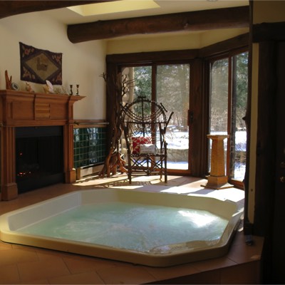 Master bath addition with Jacuzzi hot tub and gas fireplace.