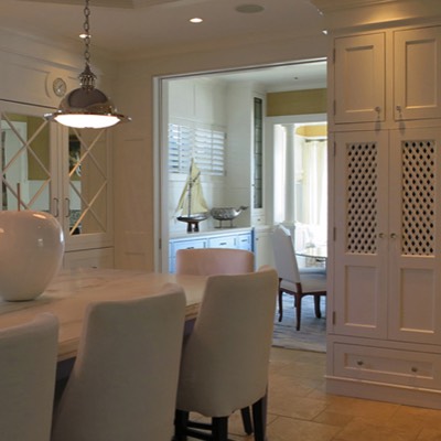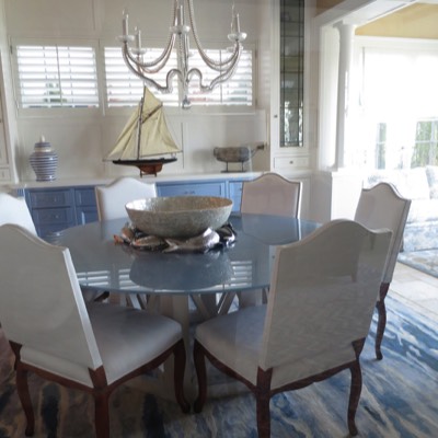 Adjacent dining room with dining table designed and fabricated by Beverly Ellsley Design.