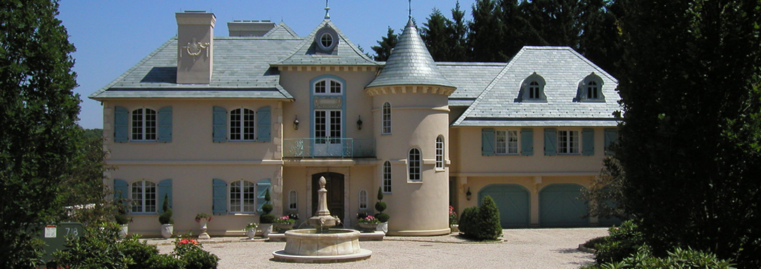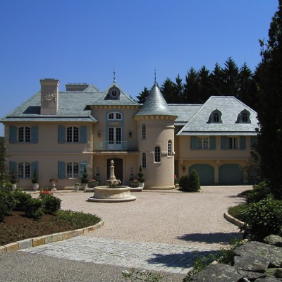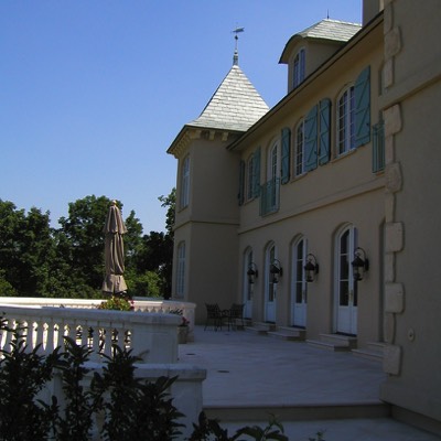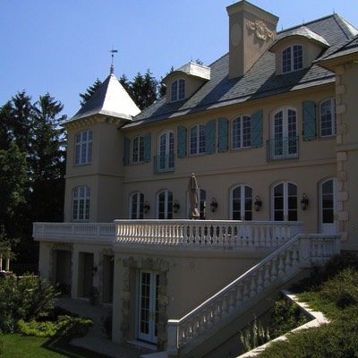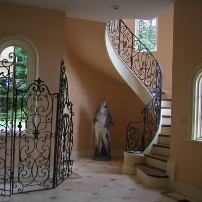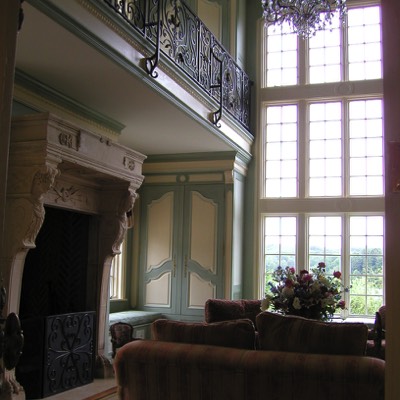 Front entrance in Turret leads to second floor of library in addition to easy access guest bedrooms.