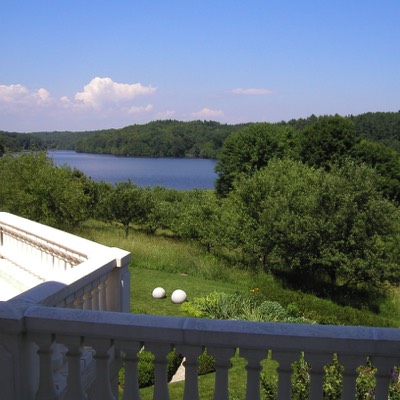 Terrace facing lake.