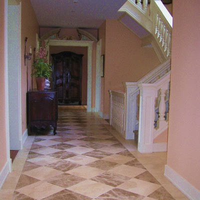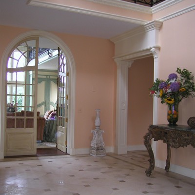 Front hall leads to library.
